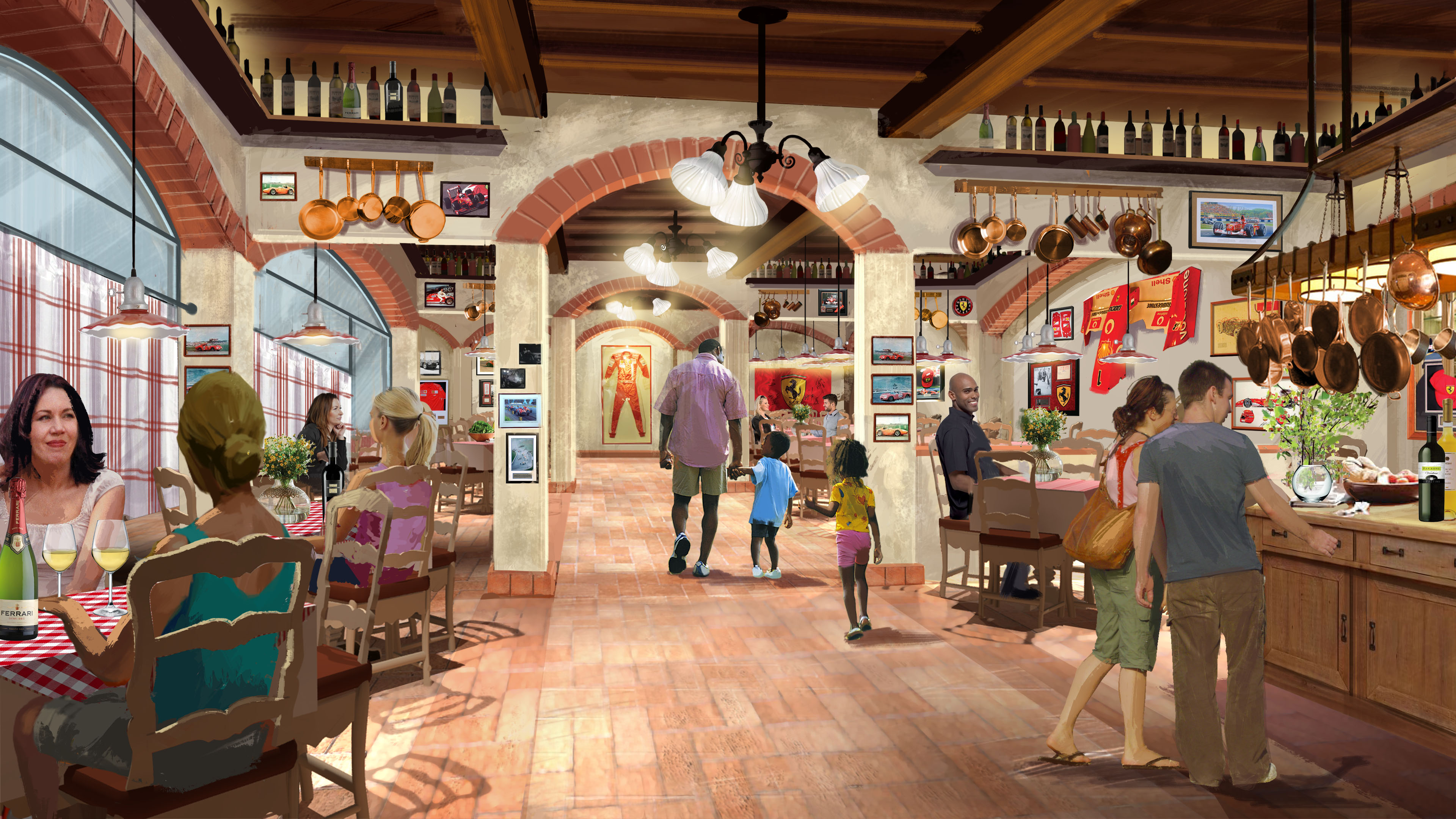 Descubre la Italia más auténtica gracias a la recreación temática de la cuna de la Scuderia Ferrari, que incluye las fachadas principales del Coliseo, la Scala