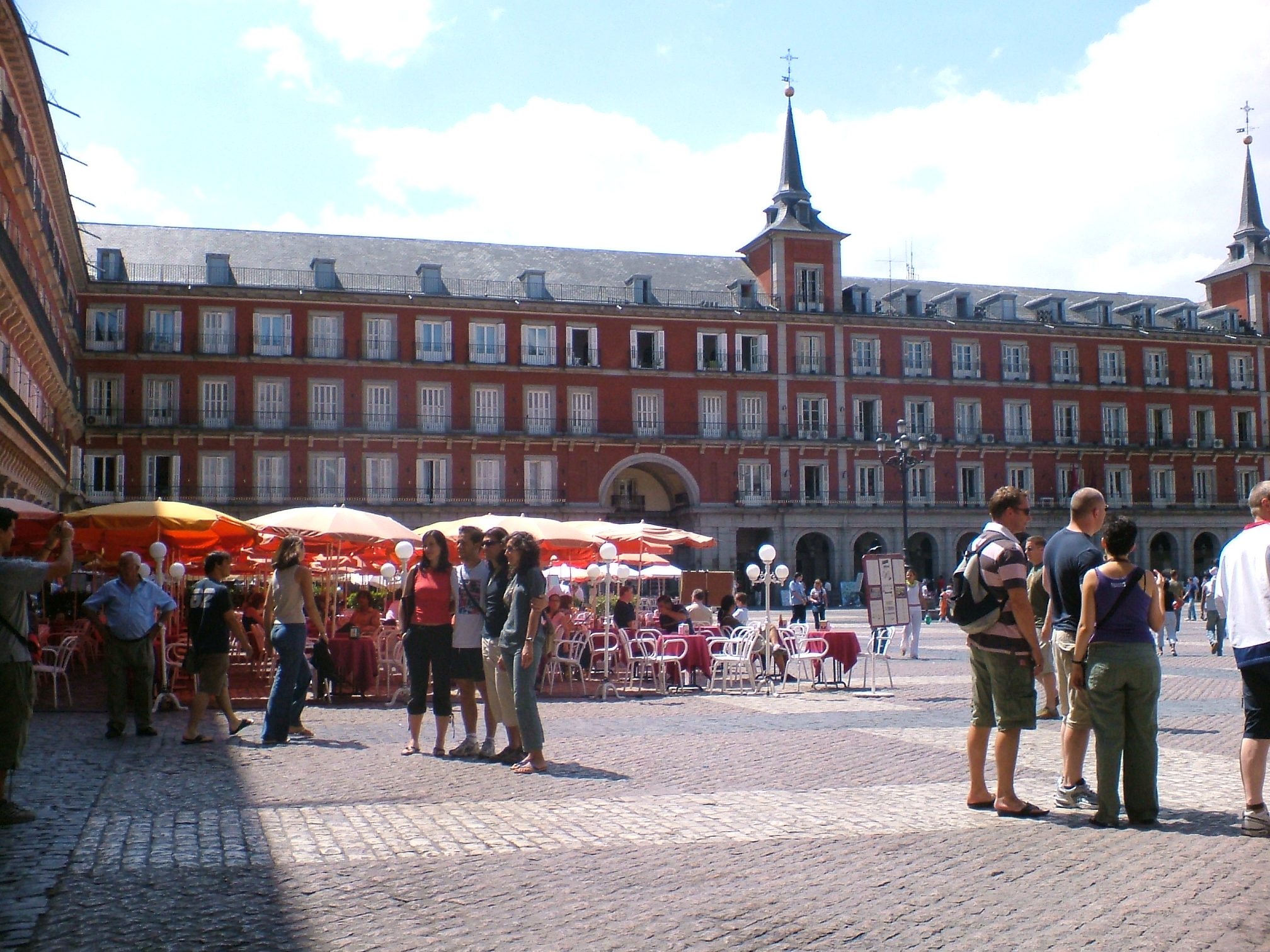 La Plaza Mayor es un símbolo de Madrid de visita obligada. Esta enorme explanada, situada en el centro de la ciudad, comenzó a construirse en el siglo XVII, por orden del rey Felipe III, cuya estatua ecuestre esculpida en bronce adorna el lugar. Inaugurada en 1620, se trata de una plaza de planta rectangular, recorrida por soportales. Este recinto fue escenario en tiempos pasados de numerosos actos públicos, tales como corridas de toros, procesiones, fiestas, representaciones de teatro, juicios de la Inquisición e incluso ejecuciones capitales. Bajo sus porches, se encuentran comercios tradicionales, además de multitud de bares y restaurantes. En la plaza destacan algunos edificios como la Casa de la Panadería, en la que sobresalen los frescos de la fachada, y la Casa de la Carnicería.